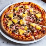 2. Assemble Pizza: On a lightly floured surface, roll out the pizza dough to your desired thickness. Transfer the dough onto the hot pizza stone or a baking sheet if you don’t have one. Spread the pizza sauce evenly across the dough’s surface. Next, sprinkle the shredded mozzarella cheese evenly over the sauce. Then, evenly distribute the chopped cooked bacon, cubed ham, fresh pineapple pieces, and sliced shiitake mushrooms if using.