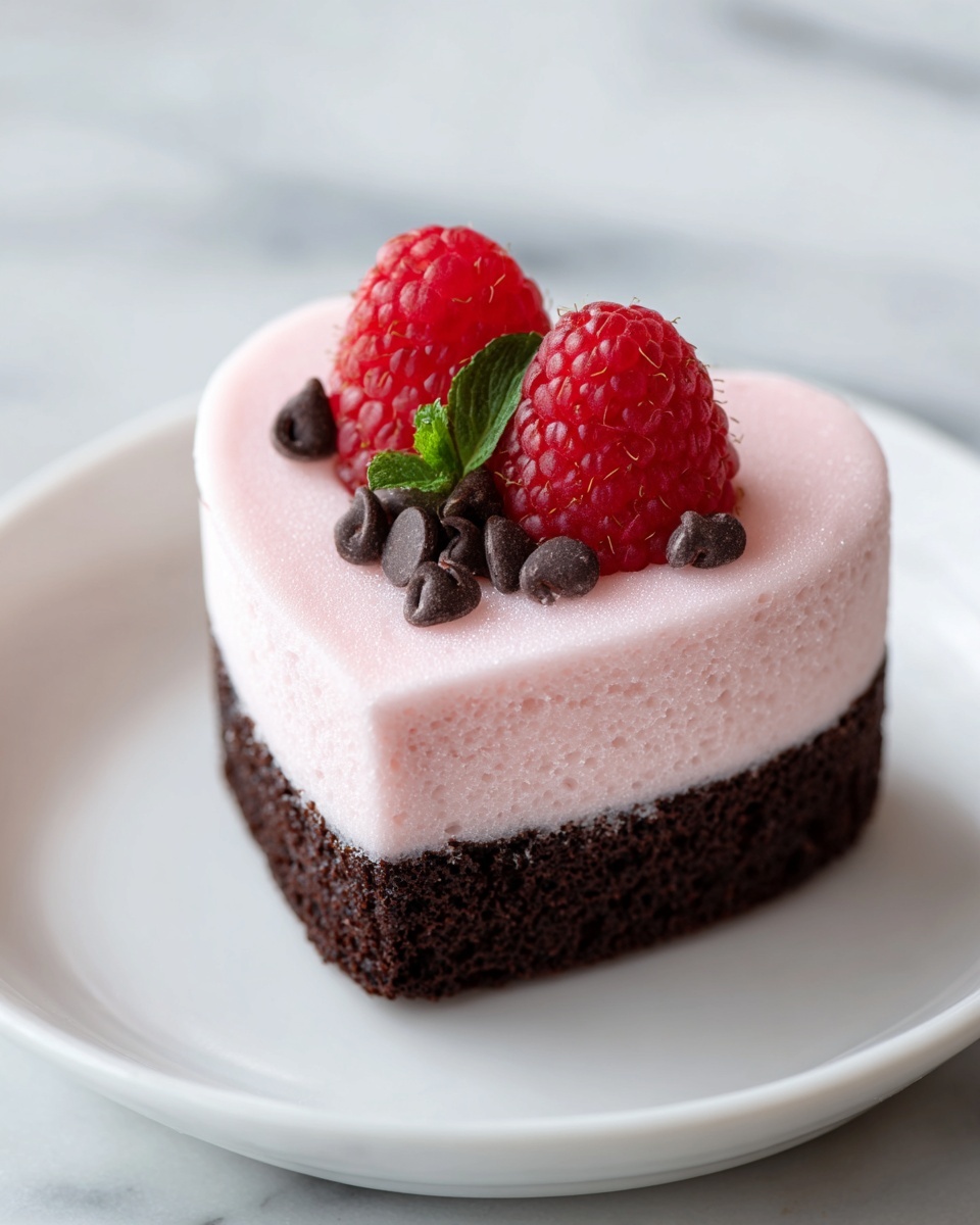 Presentation matters, especially for a romantic dessert like the Heart-Shaped Raspberry Mousse with a Brownie Base Recipe. Serve each heart on delicate dessert plates dusted with powdered sugar or a sprinkle of cocoa powder for a dramatic look. Try stacking smaller heart shapes or arranging them to form a larger heart on a platter. You can also use edible flowers or gold leaf accents for a wow factor that will leave your guests enchanted.