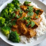 Reheat the curry gently in a saucepan over medium-low heat, stirring occasionally to prevent sticking and to restore the sauce’s creamy consistency. If the sauce thickens too much during storage, add a splash of water or broth to loosen it up. Avoid reheating it in the microwave without stirring to ensure even warmth.