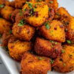 Crispy and golden homemade tater tots made from grated russet potatoes, seasoned with garlic and onion powder, and cooked by frying or baking for a deliciously satisfying snack or side dish.