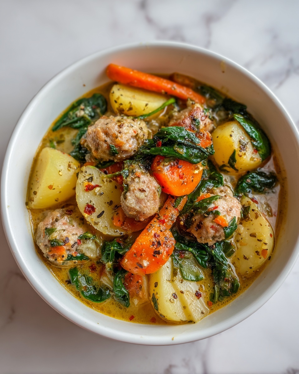 Italian Sausage Potato Soup with Carrots & Spinach Recipe