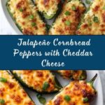 Sprinkle the remaining shredded cheddar cheese over the tops of your filled jalapeños to create a golden, bubbly crust during baking. Arrange the poppers on a baking sheet and place them in the oven for 15 to 20 minutes, until the cornbread inside is firm and the cheese on top is puffed and beautifully melted.