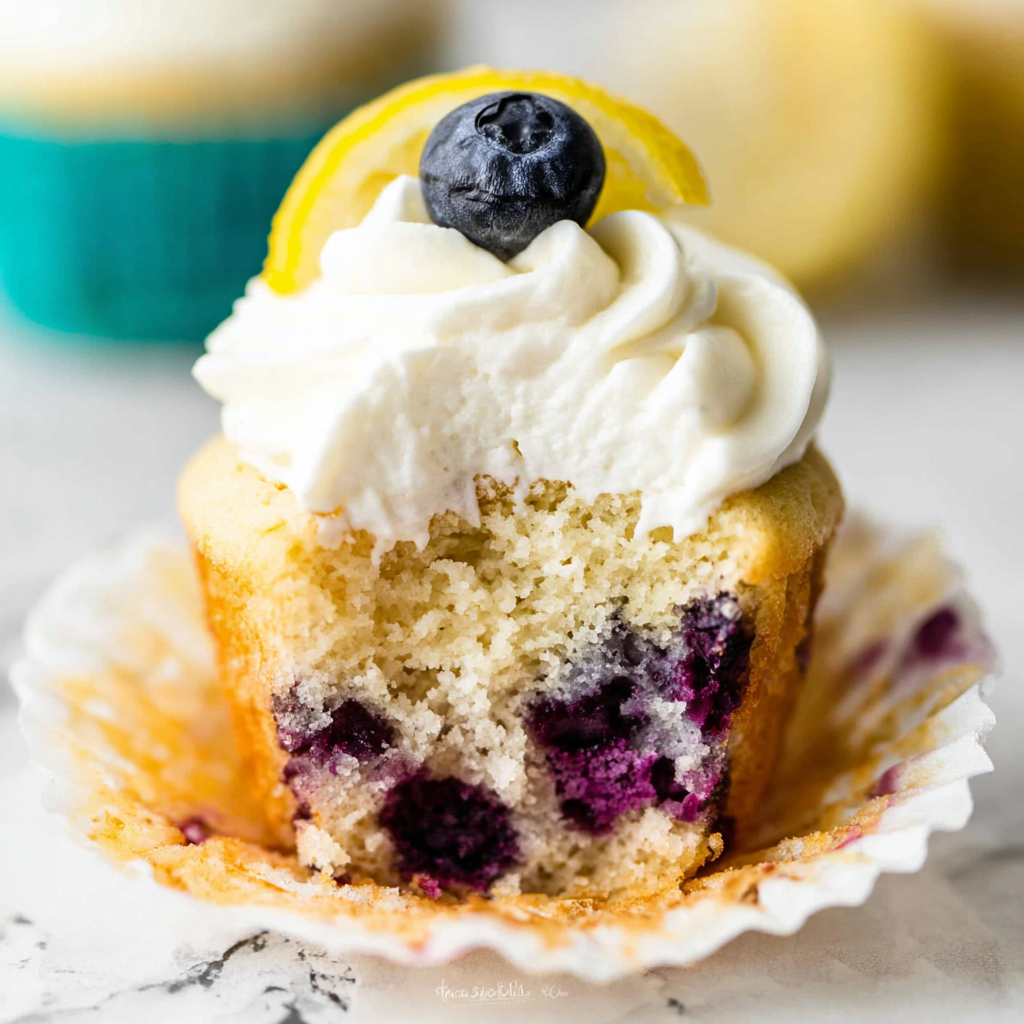 Adding thin lemon slices or a few fresh blueberries on top of the frosted cupcakes instantly elevates their look and complements the flavors inside. It’s like a preview of the delightful lemon and berry burst you’ll taste with every bite.