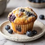 Delight in these moist and zesty Lemon Blueberry Muffins, bursting with fresh blueberries and a bright lemon flavor. Perfect for breakfast or a sweet snack, these muffins are topped with turbinado sugar for a delightful crunch.