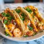 Lay a tortilla flat and spread a generous handful of shredded cheddar-jack cheese right in the center. Next, drizzle warm nacho cheese sauce over the cheese for that ooey-gooey factor. Add a layer of lightly crushed tortilla chips for crunch, then pile on the cooked shrimp. Top with diced tomatoes or pico de gallo, avocado pieces, a dollop of sour cream, jalapeños, and cilantro. These layers combine to create flavor explosions in every bite.