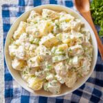 A classic and creamy Lunch Lady Potato Salad featuring tender Yukon Gold potatoes, crunchy celery, hard-boiled eggs, and a tangy mayonnaise-based dressing, perfect for picnics, potlucks, and family gatherings.