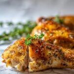 7. Rest & Garnish: Let the chicken rest for a few minutes after baking. Garnish with fresh thyme sprigs before serving warm.
