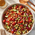 Mediterranean Chickpea Salad is a refreshing, protein-packed dish filled with vibrant veggies, fresh herbs, and a zesty lemon-olive oil dressing. Made with canned chickpeas, crunchy cucumbers, juicy tomatoes, and briny olives, it’s a perfect side or light lunch that comes together in minutes and tastes even better after chilling.