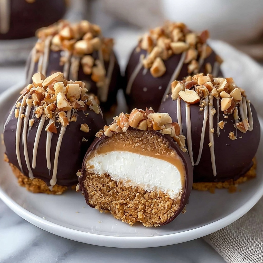 You can elevate these cheesecake balls with a few simple garnishes that add both visual appeal and taste contrasts. Drizzling melted chocolate on top creates an elegant glossy sheen and rich cocoa flavor, while a sprinkle of crushed peanuts or a pinch of sea salt brings delightful textural interest and flavor balance.