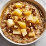 - Serve and garnish: Spoon the oatmeal into bowls and top with extra apple slices, chopped nuts, or a drizzle of maple syrup if desired. Serve immediately while warm.