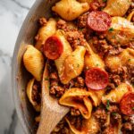 This One-Pot Pizza Pasta recipe combines classic pizza flavors with the ease of a one-pot meal. Ground beef, mini pepperoni, vegetables, and pasta are cooked together in a flavorful tomato-based sauce, topped with melted mozzarella cheese for a quick and comforting dish perfect for busy weeknights.