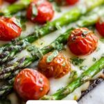This Parmesan Roasted Asparagus with Tomatoes & Balsamic recipe is a quick, flavorful side dish that combines tender roasted asparagus spears with juicy cherry tomatoes, rich shaved parmesan, fragrant garlic, fresh basil, and a tangy balsamic reduction. Ready in just 17 minutes, it’s perfect for a healthy and elegant addition to any meal.