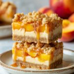 Place your pan in the oven and bake for 40 to 45 minutes. You’ll know it’s done when the edges are set and the center no longer jiggles when you gently shake the pan. This ensures your Peach Cobbler Cheesecake Bars Recipe has that perfect custard-like texture without being overly dense.