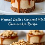 Delight in these Peanut Butter Caramel Mini Cheesecakes, featuring a crunchy graham cracker crust, creamy peanut butter-infused filling, and a luscious caramel topping with chopped peanuts. Perfect for holiday gatherings or as a sweet treat any day.