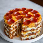 There’s nothing quite like grabbing a slice of this Pepperoni Pizza Layer Cake Recipe: A Fun Twist on a Classic Favorite! Recipe to lift your spirits and your dinner game. It’s fun to make, visually impressive, and satisfies all your favorite pizza cravings in every cheesy, flavorful bite. Give it a try and watch your friends and family fall in love with pizza all over again in a whole new way.