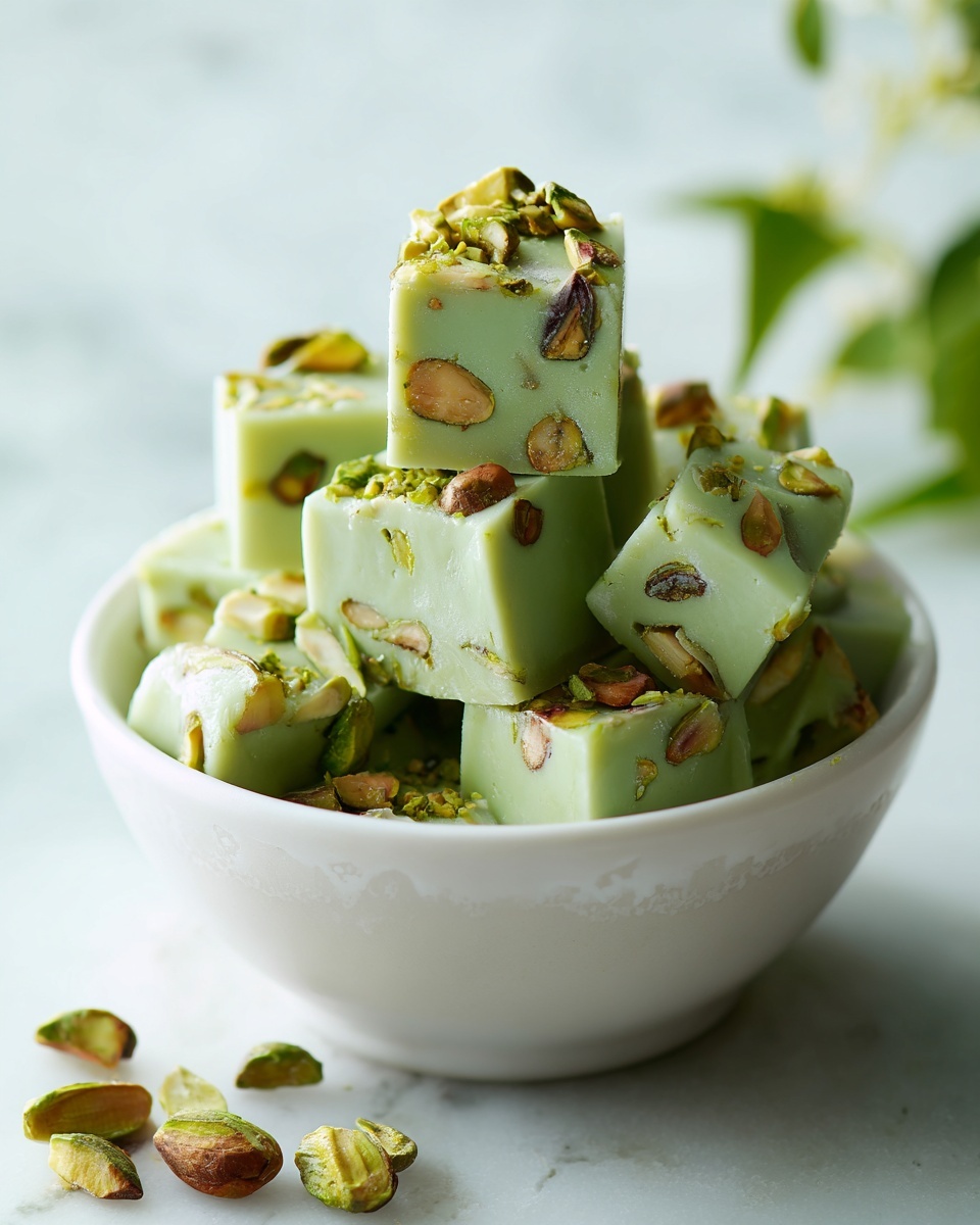 To make your pistachio fudge even more eye-catching, sprinkle a few whole pistachios on top or a dusting of powdered sugar right before serving. A drizzle of white or dark chocolate adds an extra touch of decadence and visual appeal that will impress anyone lucky enough to have a piece.
