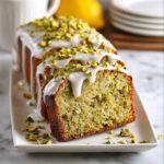This Pistachio Lemon Breakfast Bread is a moist and flavorful loaf combining the nutty crunch of finely chopped pistachios with the zesty brightness of fresh lemon. Perfect for a morning treat or afternoon snack, this bread is made with a tender crumb from yogurt and oil, finished with a sweet lemon glaze and garnished with extra pistachios for texture and burst of flavor.