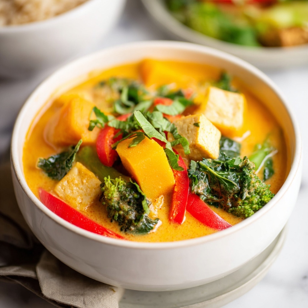 A rich and flavorful Thai-inspired pumpkin curry that combines creamy coconut milk with warm spices and tender pumpkin, perfect for a comforting vegan and gluten-free main course.