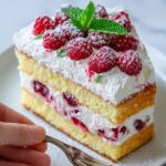 Fresh raspberries are the natural choice to garnish this Raspberry Cream Cheese Layer Cake – A Sweet Celebration Recipe, adding a pop of color and burst of freshness. Light dustings of powdered sugar or delicate mint leaves also complement the cake’s vibrancy perfectly. These simple touches make the presentation festive and inviting.