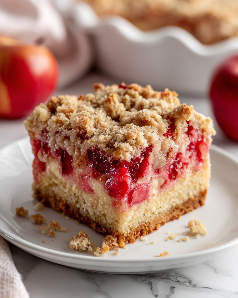 Reheat slices gently in the microwave for 15-20 seconds or in a warm oven (around 300°F or 150°C) for 5-10 minutes to revive the lovely buttery crispness of the topping and soften the cake’s interior.