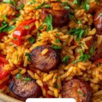 A hearty and flavorful one-pan meal combining Italian sausage, long-grain rice, and savory vegetables, simmered together with herbs and tomatoes for a comforting dish that’s perfect for any weeknight dinner.