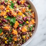 A vibrant and nutritious Roasted Sweet Potato Black Bean Quinoa Salad featuring tender roasted sweet potatoes, protein-packed black beans, fluffy quinoa, and fresh southwestern flavors. This vegan and gluten-free dish is perfect for meal prep or a wholesome main course, served warm or chilled with optional toppings like avocado or feta cheese.