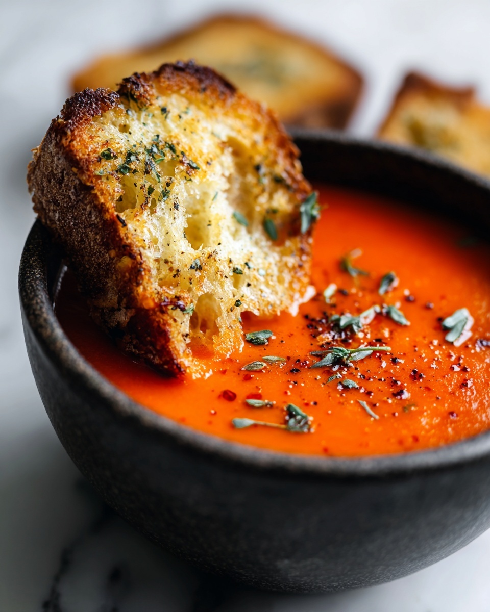 Add a pinch of red pepper flakes before roasting or stir in some smoked paprika or cayenne pepper when blending. This will add warmth and a gentle kick that complements the sweetness of the tomatoes.