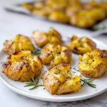 Try serving these potatoes family-style in a rustic cast-iron skillet or on a vibrant ceramic platter to show off their golden, crinkly edges. For a party, you could turn them into crispy potato bites loaded with sour cream and scallions as an appetizer twist. These smashed potatoes are versatile, so don’t hesitate to experiment with textures and presentations.