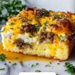 This hearty Sausage Breakfast Strata combines fluffy bread cubes soaked in a rich egg custard with savory maple-infused breakfast sausage, sautéed onions, fresh herbs, and melted cheddar cheese. Perfect for a comforting brunch or breakfast gathering, the dish is prepared ahead and baked to golden, fluffy perfection, offering a delicious balance of sweet and savory flavors.
