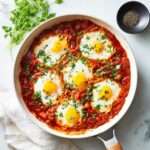 Once the eggs are perfectly nestled and cooked, remove the skillet from heat. Sprinkle freshly chopped parsley or cilantro on top for a fresh, bright touch. If you love feta, crumble some over for an added layer of tangy, salty creaminess that complements the dish beautifully.