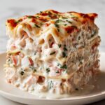 This delightful Shrimp Lasagna with White Sauce and Cheese combines tender shrimp, creamy ricotta, and a luscious white béchamel sauce layered between perfectly cooked lasagna noodles. Baked until bubbly and golden, this Italian-inspired main course offers a rich, savory seafood twist on the traditional lasagna that’s perfect for family dinners or special occasions.