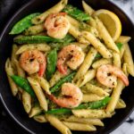 While pesto-based dishes don’t always freeze well due to texture changes in the pesto sauce, you can freeze the pasta and shrimp separately if needed. Freeze in airtight containers or freezer bags for up to one month, but plan to use the lemon juice fresh when reheating to revive brightness.