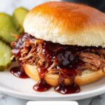 Pile the hot honey shredded chicken onto your favorite buns and top with crisp pickle slices for a tangy crunch. This finishing touch brightens the sandwich and complements the sweet heat perfectly.