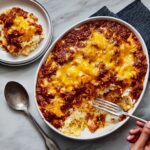 - Assemble the Casserole: In a baking dish, spread half of the noodle and cheese mixture. Layer half of the meat sauce over the noodles, then sprinkle half of the grated cheddar cheese on top. Repeat the layering: noodles, meat sauce, and finish with the remaining cheese.
