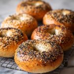 - Add Toppings and Bake: Sprinkle your desired toppings such as sesame seeds or poppy seeds over the boiled bagels. Preheat your oven to 425°F (220°C). Bake the bagels for 20-25 minutes or until they develop a golden brown and crusty exterior. Remove from oven and cool on a wire rack before serving.