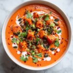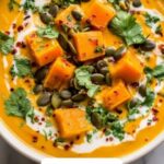 A sprinkle of fresh cilantro leaves brings a vibrant, herbal freshness that nicely contrasts the warm spices, while toasted pumpkin seeds add a satisfying crunch and nutty depth. These garnishes don’t just make the soup pretty—they add textural and flavor layers that elevate every bite.