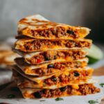 These Spicy Beef Quesadillas offer a perfect blend of seasoned ground beef, melted pepper jack and cheddar cheeses, and a crispy golden tortilla. Ideal for a hearty Mexican-inspired main course, they are quick to prepare on the stovetop and customizable with optional toppings like sour cream, salsa, and guacamole for added flavor and texture.
