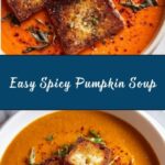 A cozy and flavorful Spicy Pumpkin Soup paired with crispy, cheesy grilled cheese croutons. This hearty soup blends warm spices with creamy pumpkin and a touch of sweetness, making it perfect for fall or any chilly day. The grilled cheese croutons add a deliciously melty texture contrast, elevating this comforting bowl to a satisfying meal.