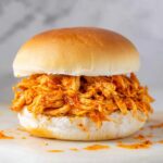 To reheat, warm the shredded chicken in a skillet over medium heat or microwave it covered to retain moisture. If it feels a little dry, stir in a splash of buffalo sauce or melted butter to bring back that signature juicy texture. Toast the buns fresh and add crisp toppings to get that just-made feel all over again.