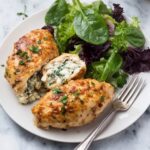 Keep any leftover spinach stuffed chicken in an airtight container in the refrigerator for up to 3 days. This makes for an easy, delicious next-day lunch or dinner.