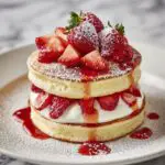 Delight in this luscious Strawberry Cheesecake French Toast, perfect for breakfast or brunch. Thick-cut bread is soaked in a cinnamon-vanilla egg batter, pan-fried to golden perfection, and topped with a creamy strawberry cheesecake filling and fresh strawberries. Drizzled with maple syrup and a dusting of powdered sugar, this recipe offers a sweet and indulgent twist on classic French toast.