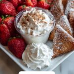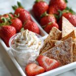 Arrange the cinnamon-sugar chips on a large serving tray so they’re easy to grab. Present the cheesecake dip and glazed strawberries in separate bowls alongside the chips for dipping and topping. This fun,互动 style lets everyone customize their bites and enjoy the full experience of this Strawberry Cheesecake Nachos Recipe.