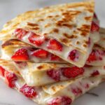 - Rest and Serve: Allow the quesadillas to cool for 2 minutes. Slice into wedges and serve warm, optionally with strawberry sauce for dipping.