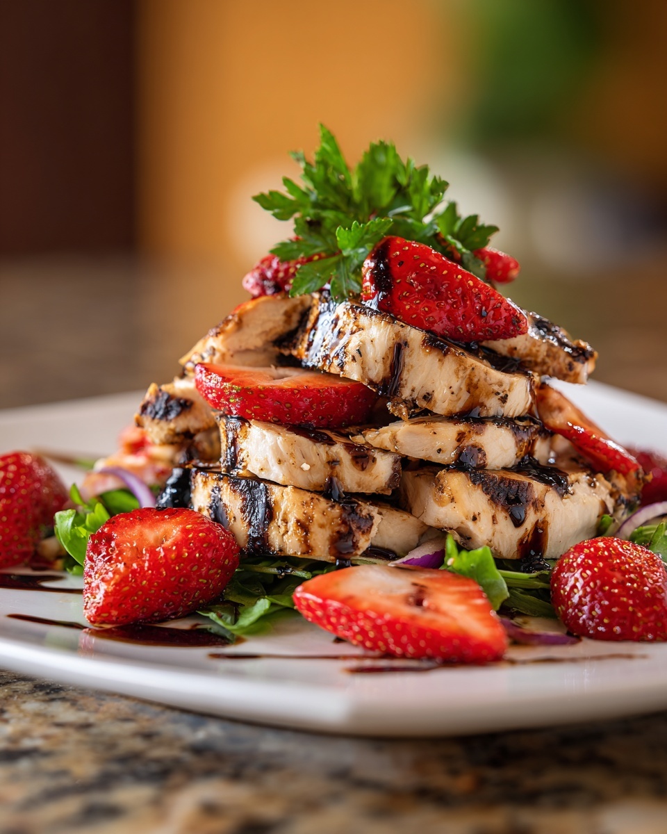 This fresh and vibrant Strawberry Chicken Salad combines tender cooked chicken breast with juicy strawberries, mixed greens, crunchy nuts, and tangy cheese, all dressed in a simple homemade balsamic vinaigrette. Perfect for a light, healthy lunch or an easy summer dinner, this salad balances sweet and savory flavors with delightful textures and is quick to prepare without any cooking required.