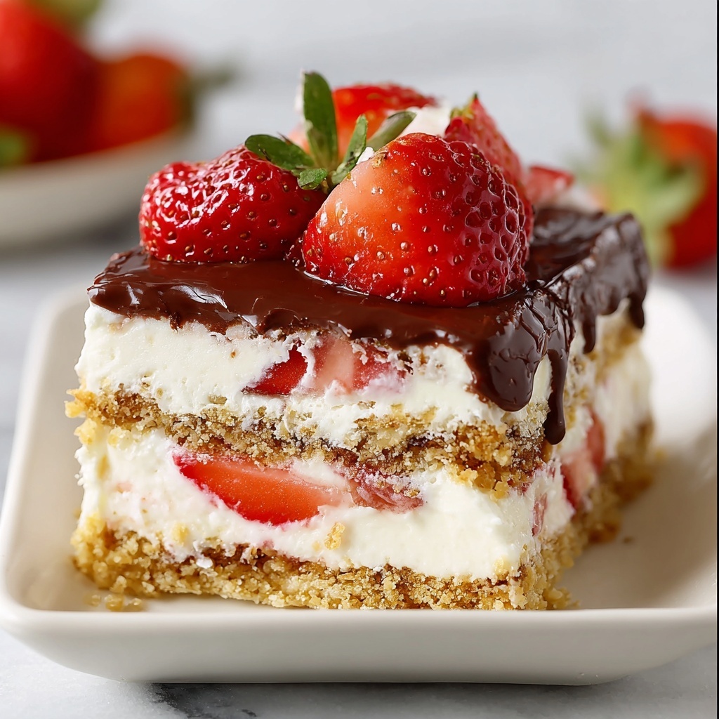 Strawberry Eclair Cake is a no-bake, layered dessert featuring a crunchy graham cracker crust, a creamy vanilla pudding filling, fresh strawberries, and a rich chocolate glaze. This easy-to-make cake is perfect for gatherings and can be prepared ahead of time, allowing the flavors to meld beautifully after chilling.