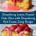 Strawberry Lemon Crunch Cake Slice with Strawberry Red Cream Cheese Icing Recipe