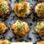 These stuffed mushrooms feature tender baby mushroom caps filled with a savory mixture of sautéed mushroom stems, garlic, bread crumbs, cream cheese, Parmesan, and fresh herbs. Baked to golden perfection, they make an irresistible appetizer or side dish that’s rich, flavorful, and easy to prepare.