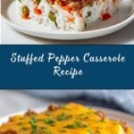 This Stuffed Pepper Casserole is a hearty and flavorful one-pan meal combining the classic stuffed pepper ingredients in an easy-to-make casserole. Ground beef, bell peppers, rice, and tomato sauce simmered together and baked with melted mozzarella cheese on top make for a comforting, family-friendly dish ready in under an hour.