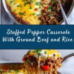 This hearty Stuffed Pepper Casserole combines the rich flavors of ground beef, bell peppers, and a blend of cheeses with savory seasonings and rice. It’s an easy one-pan meal that captures the essence of stuffed peppers in a simplified casserole form, perfect for a comforting dinner in just 45 minutes.