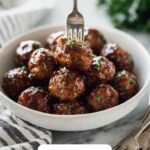 For parties, serve these meatballs on toothpicks arranged on a platter with a drizzle of extra sauce for guests to grab easily. You can also stuff them inside slider buns with some crunchy slaw for a fun twist that’s sure to be a hit with kids and adults alike.